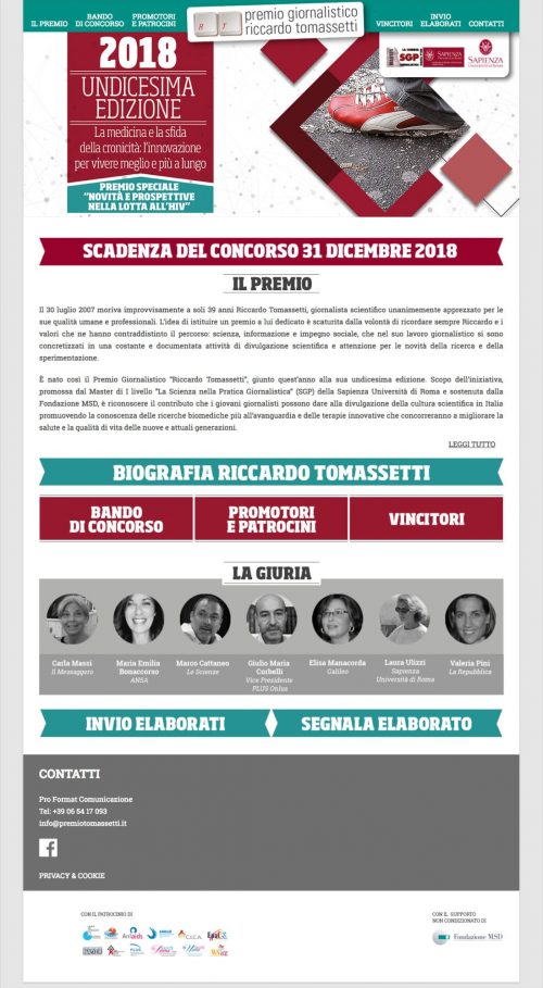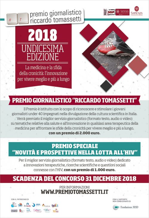 Dedicato alla memoria di Riccardo Tomassetti, brillante giornalista scientifico scomparso nel 2007 a soli 39 anni, il Premio giornalistico “Riccardo Tomassetti”, dedicato ai giornalisti under 40 che attraverso un modello di giornalismo scientifico chiaro