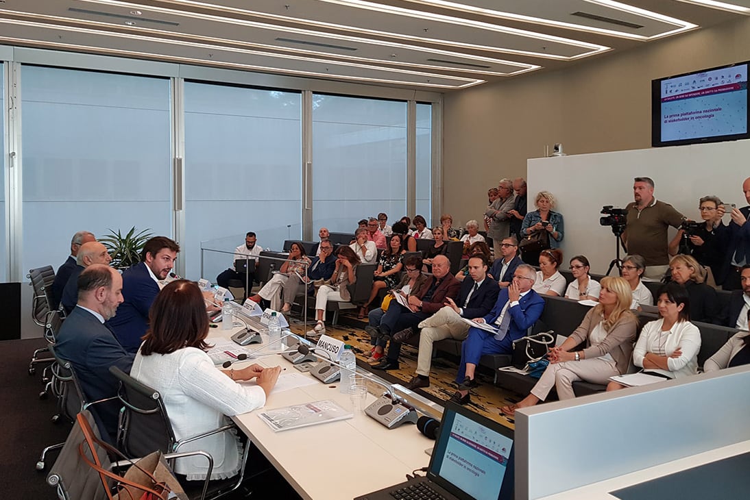 A tal fine è stata costituita una piattaforma di stakeholder in Oncologia permanente a carattere consultivo composta da 21 Associazioni pazienti oncologici e onco-ematologici; una commissione tecnico-scientifica rappresentativa di tutti i più importanti attori dell’Oncologia a livello nazionale; un Intergruppo parlamentare nazionale interpartitico e gli Intergruppi consiliari regionali.